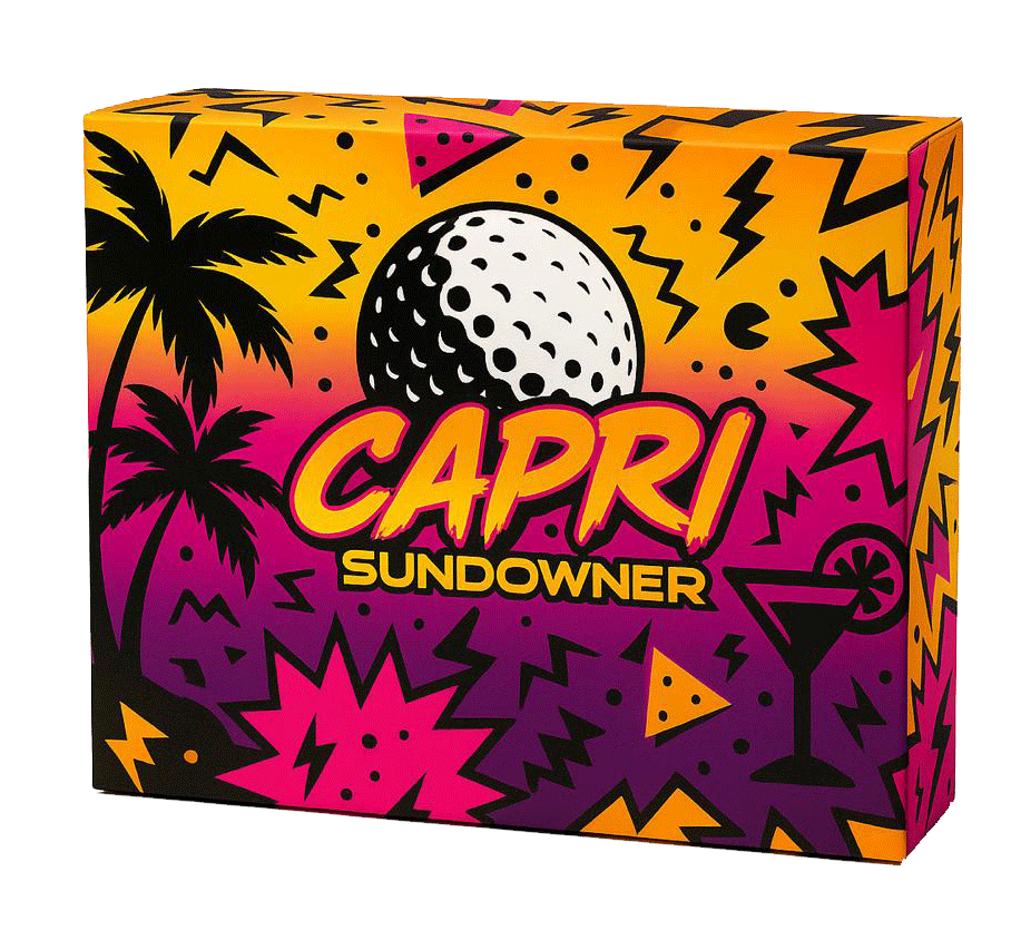 Capri Golf – Ungewöhnlich / Laut / Top Performance – Capri Golf ist unser Flaggschiff! Gemacht für alle, die im Golfsport keine Kompromisse eingehen. Unsere innovativen Golfbälle, präzise gefertigten Schläger, stilvolle Bekleidung und cleveren Accessoires sind gemacht, um dein Spiel auf ein neues Niveau zu heben.